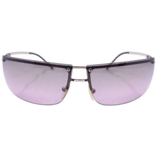 Matte silver lightweight sport frame with black accents on the front frame and overlaid lens. Condition 9.5/10: Frame and lenses in excellent condition. Comes with an unbranded soft sleeve.