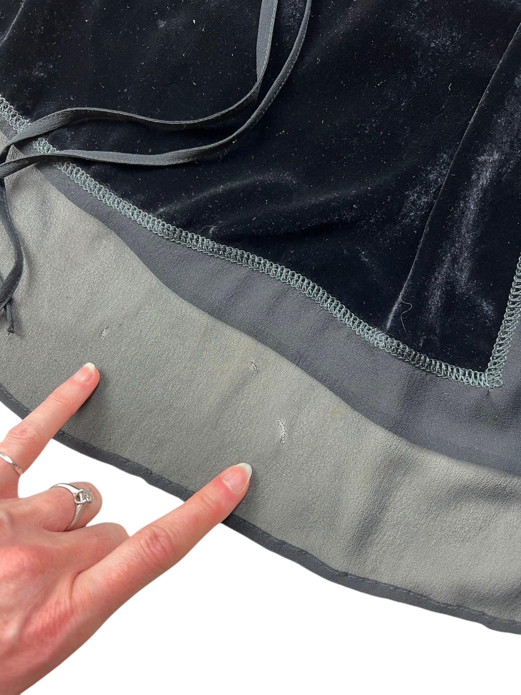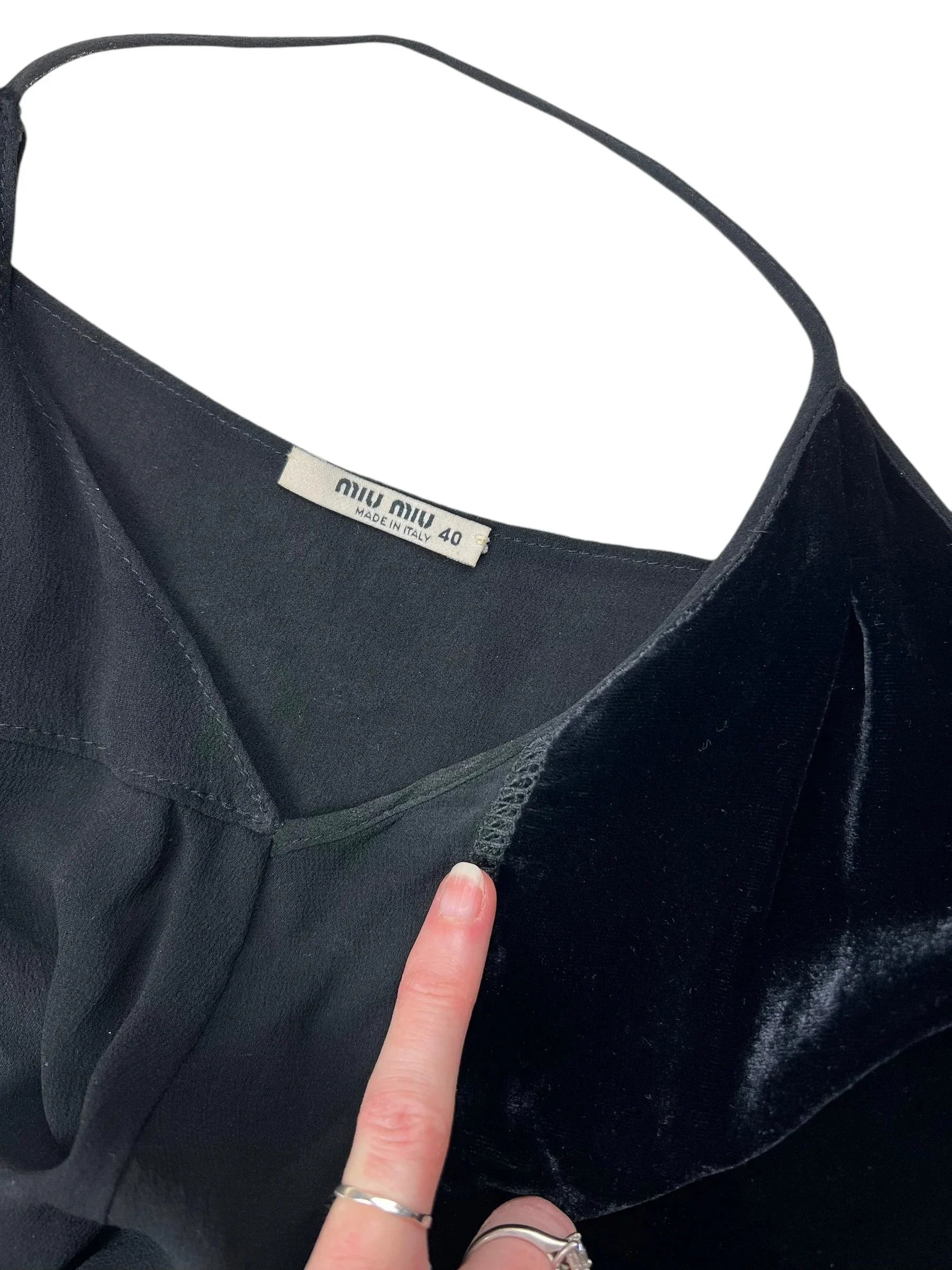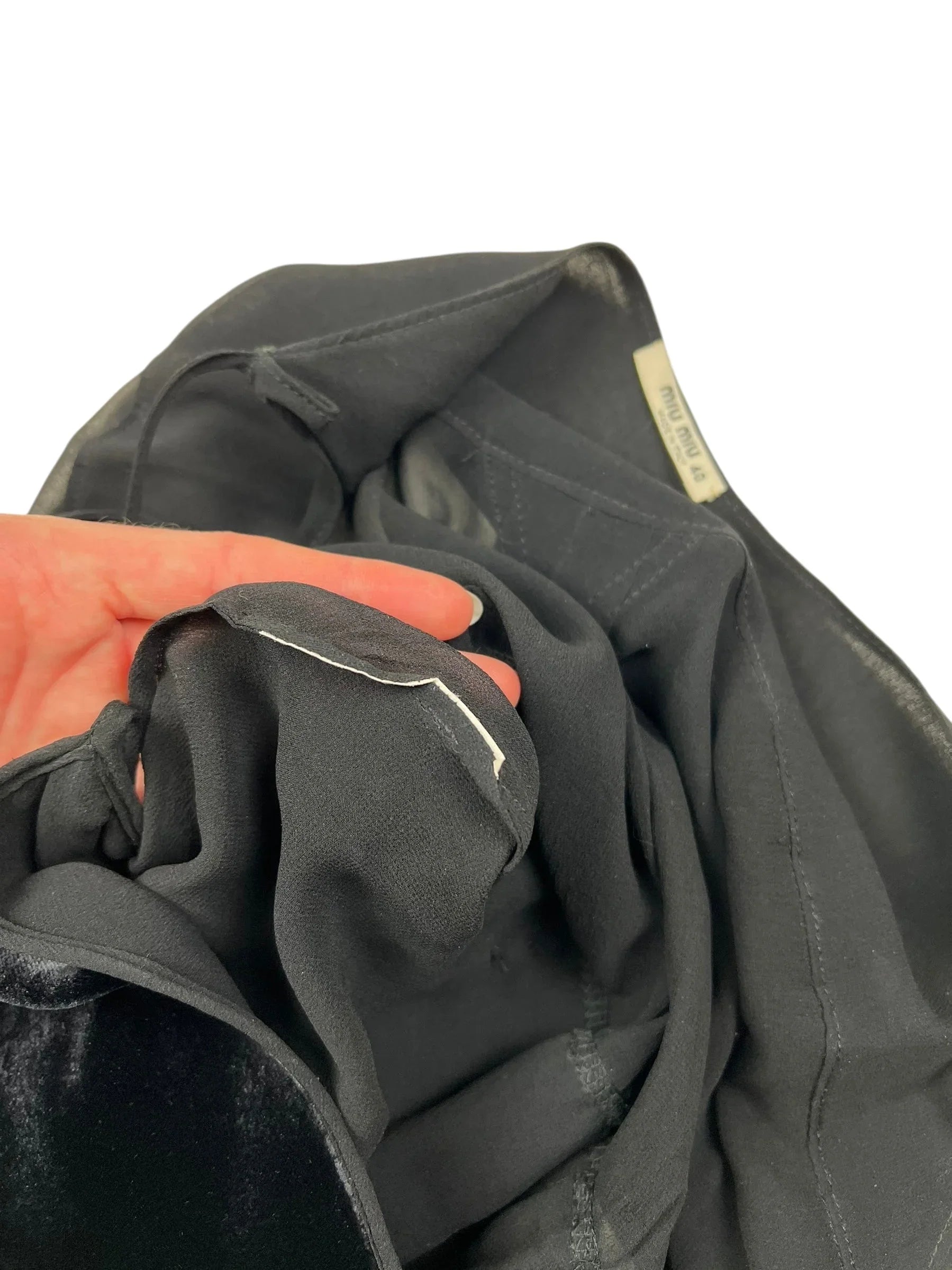 Mid 1990s Miu Miu black velvet sheer side panel dress with corset back detail and hook eye front. Size S (UK8/10). All details below: