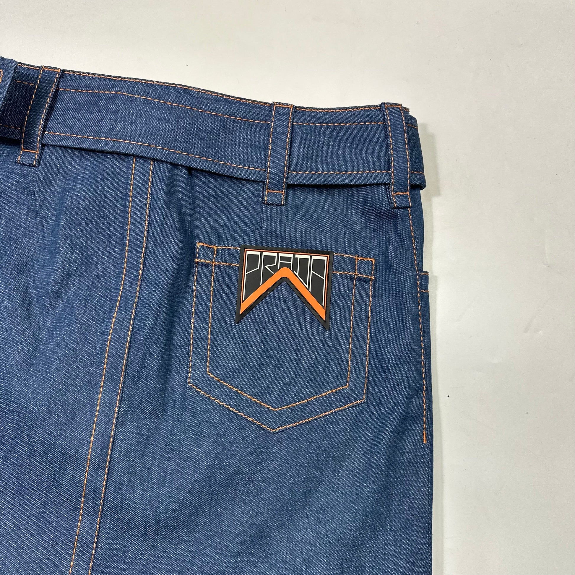 Prada 2018 Rubber Race Logo Denim Belted Mini Skirt - IT36