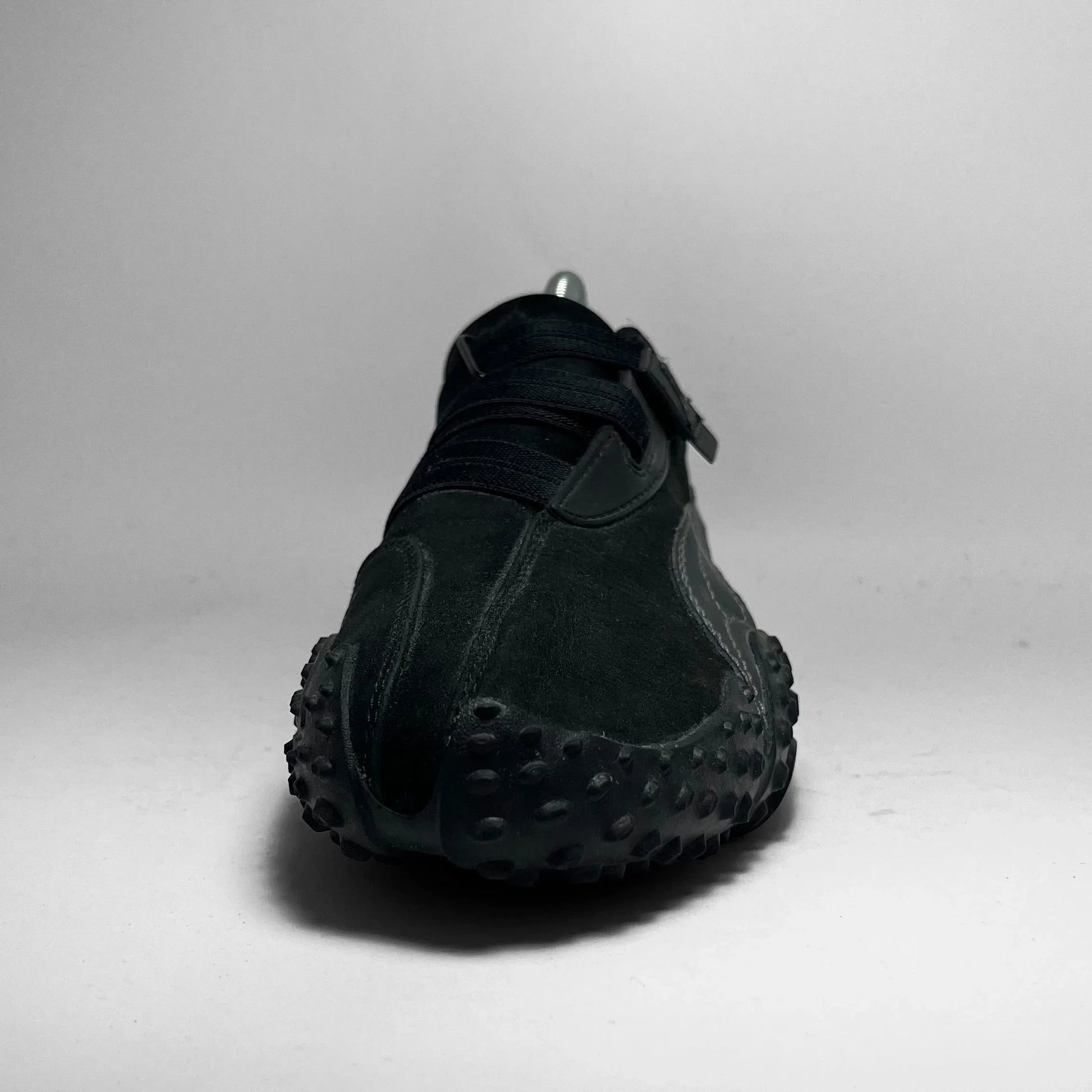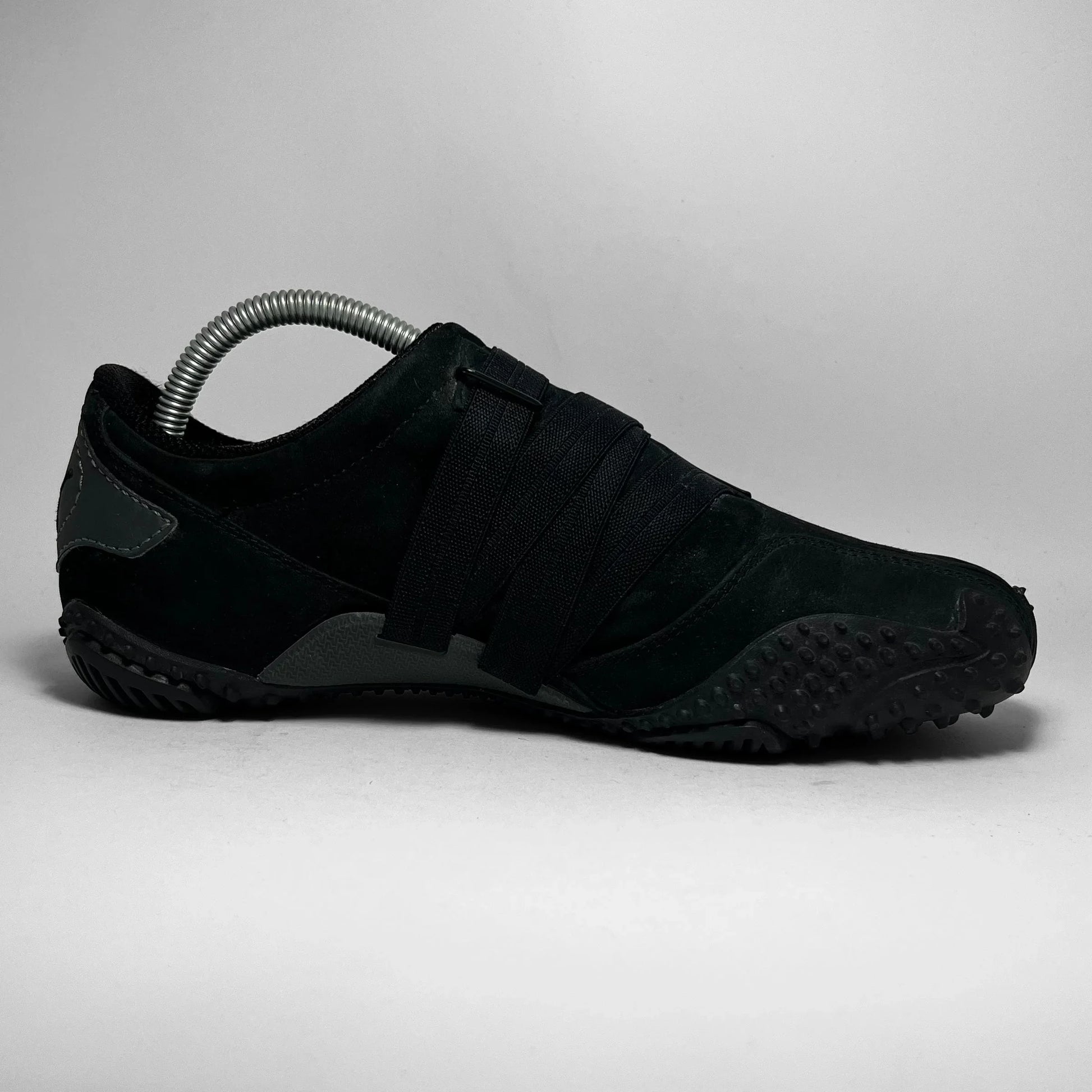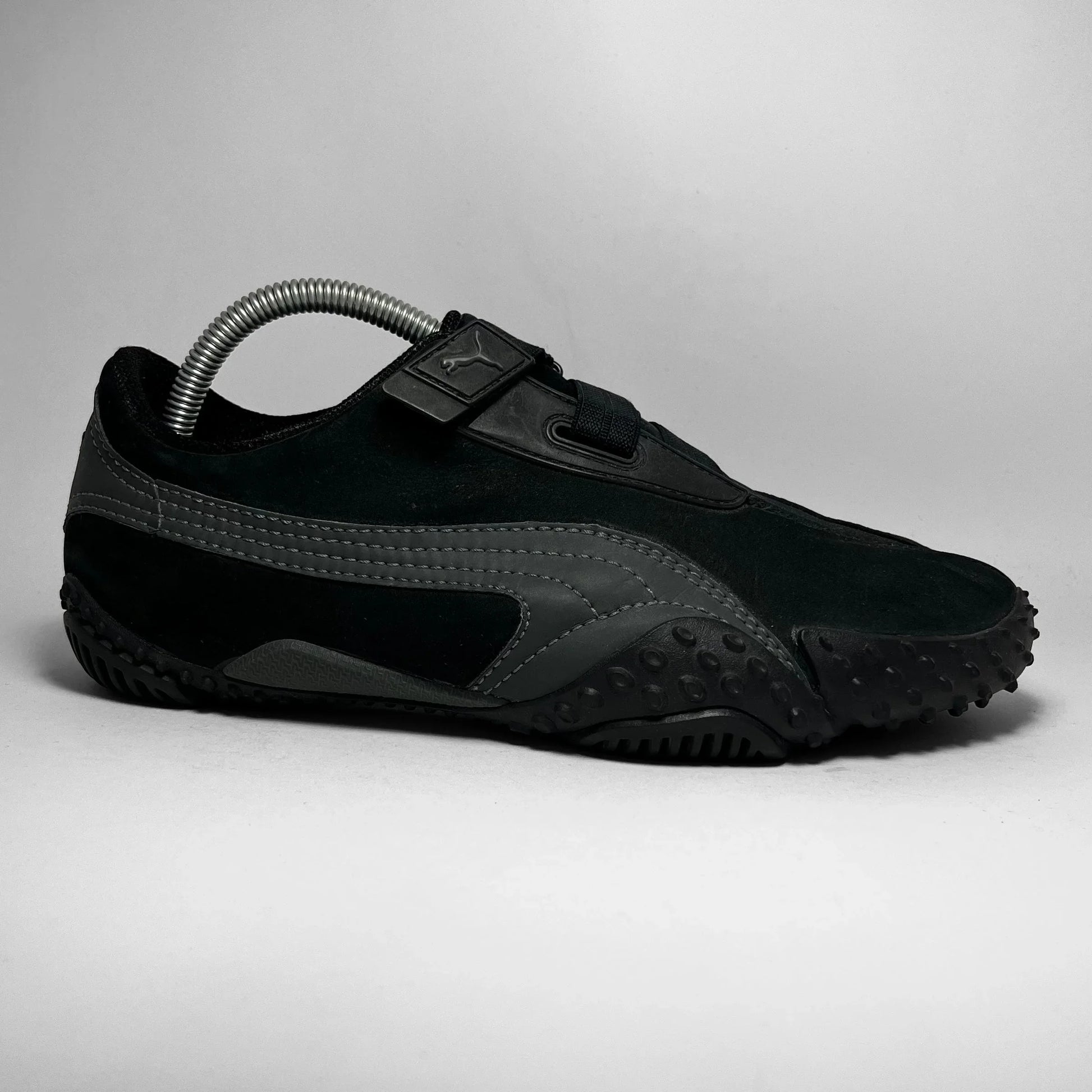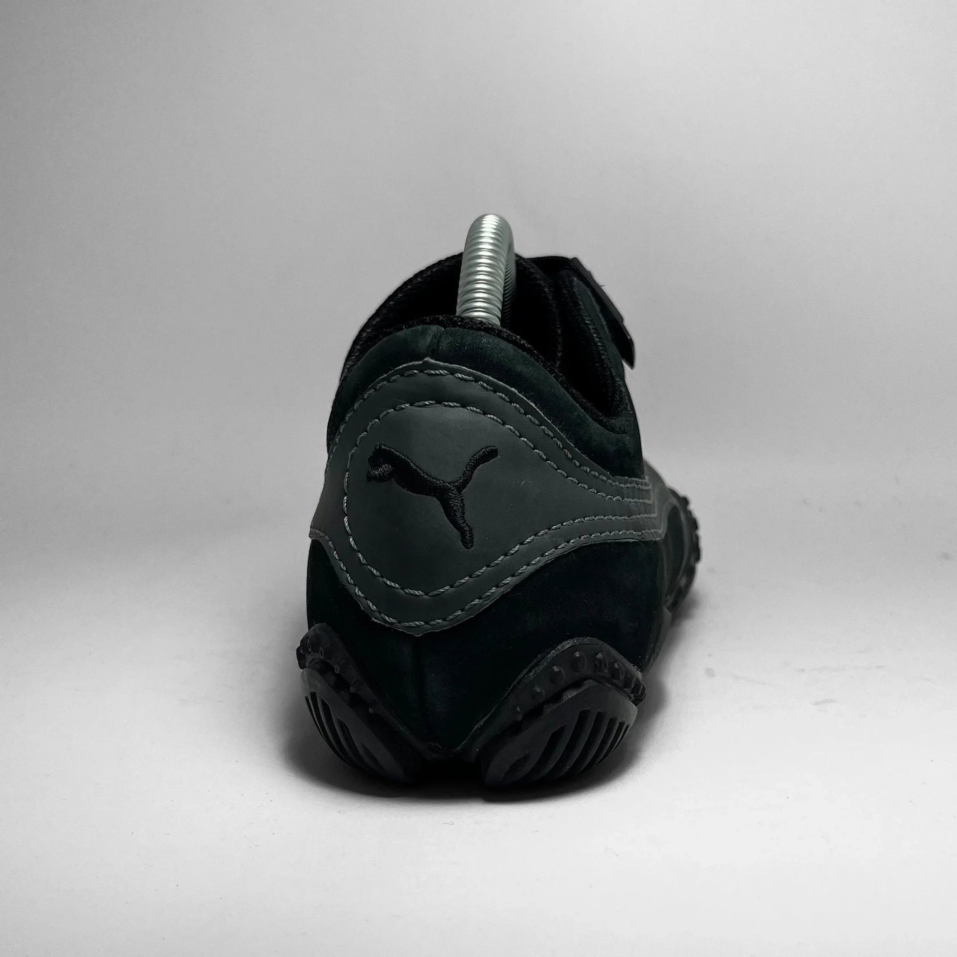 Suede upper with split design and grain leather Puma branding and heel panel in grey featuring similar stitching, embroidered branding and branded elastic velcro strap across the foot.