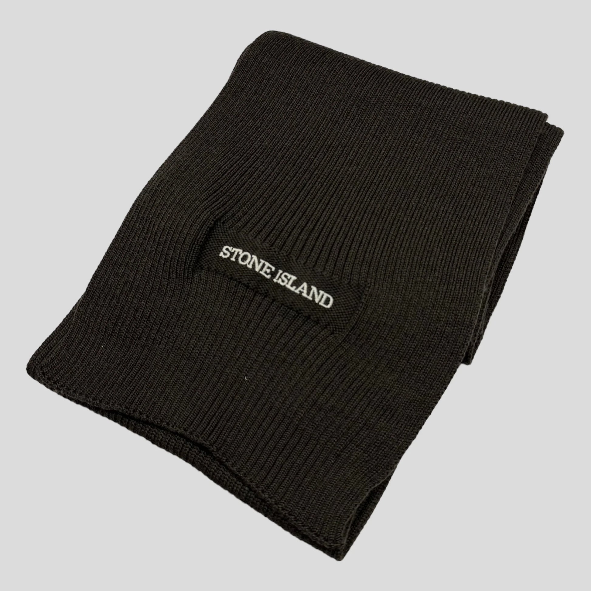 Gorgeous AW2010 Stone Island Khaki Wool knitted scarf, embroidered stone island logo, 100% wool made in Italy.
