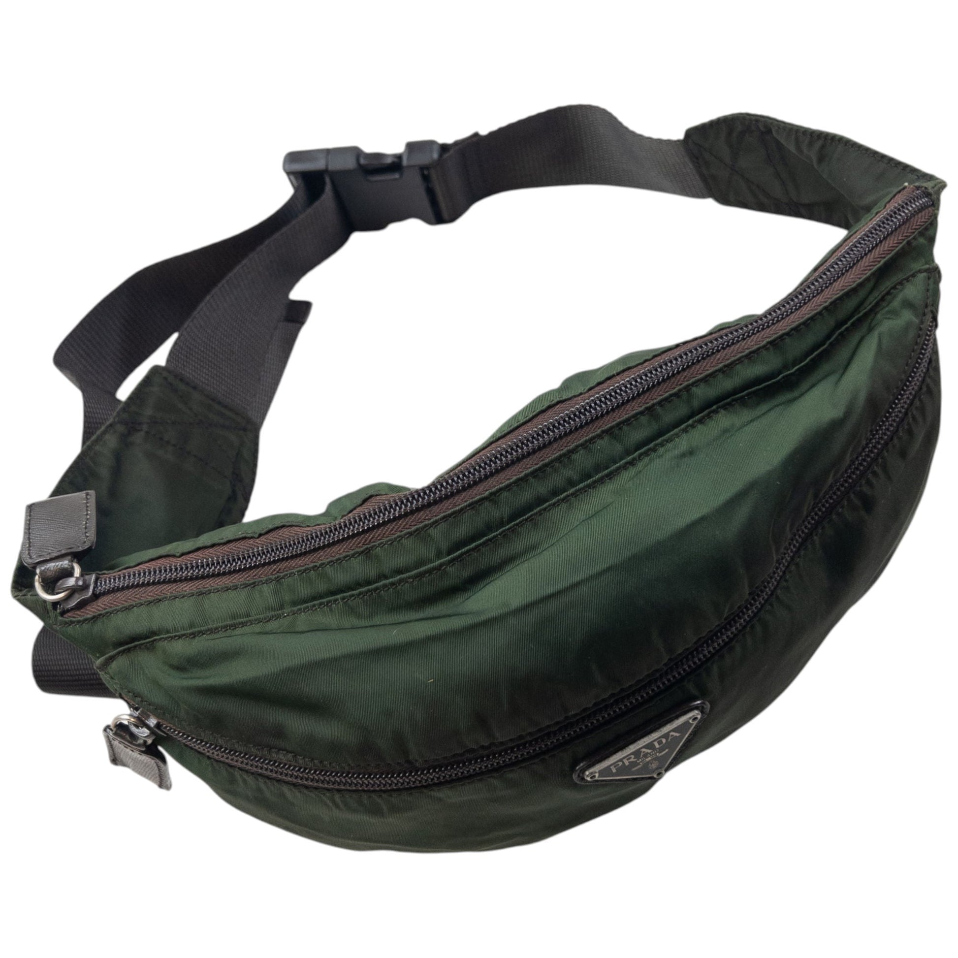 • Other info: Green colour, brown accent colour, adjustable strap, prada symbole plate detail, minor general wear as seen