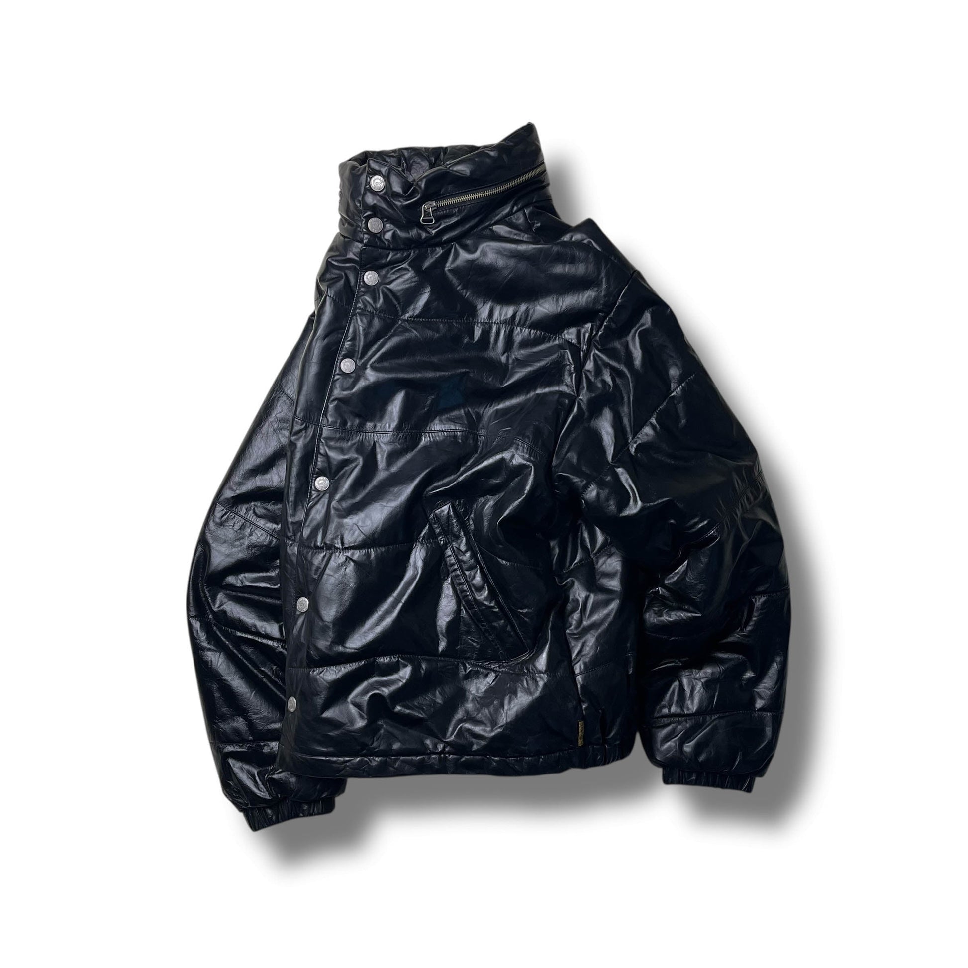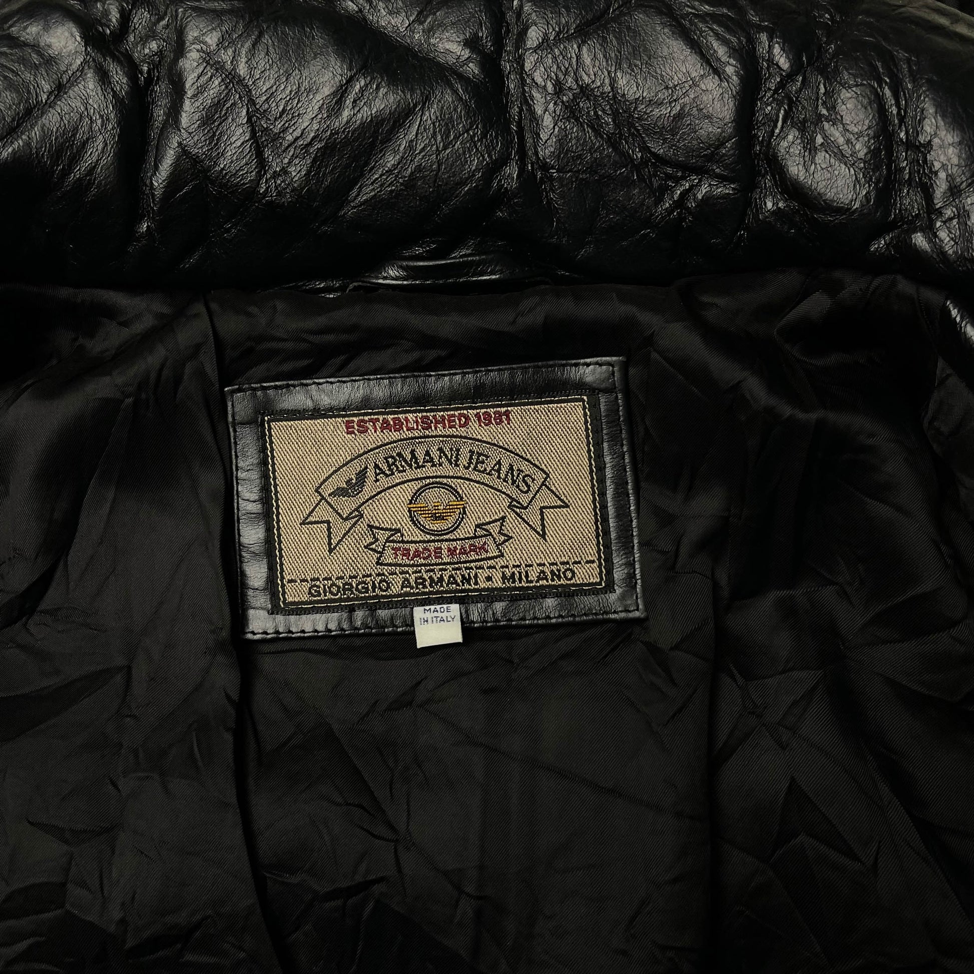90s Armani Jeans Leather Lined Jacket with Packable Hood and Gold Armani Logo