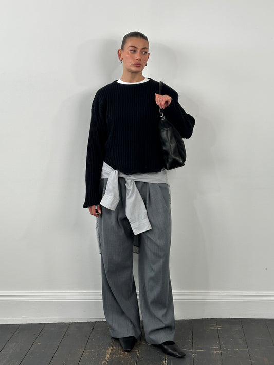 Italian Vintage Pure Cashmere Cropped Ribbed Jumper - L