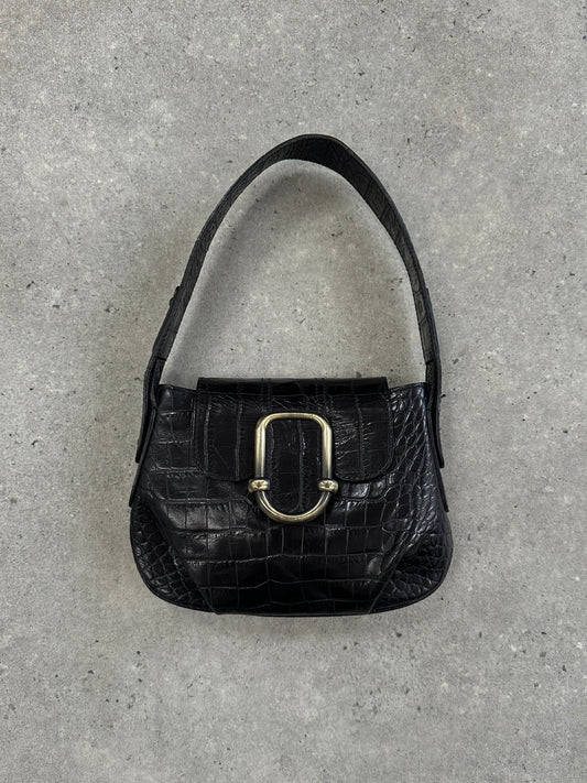 Emporio Armani 1990s Hardware Croc Leather Shoulder Bag