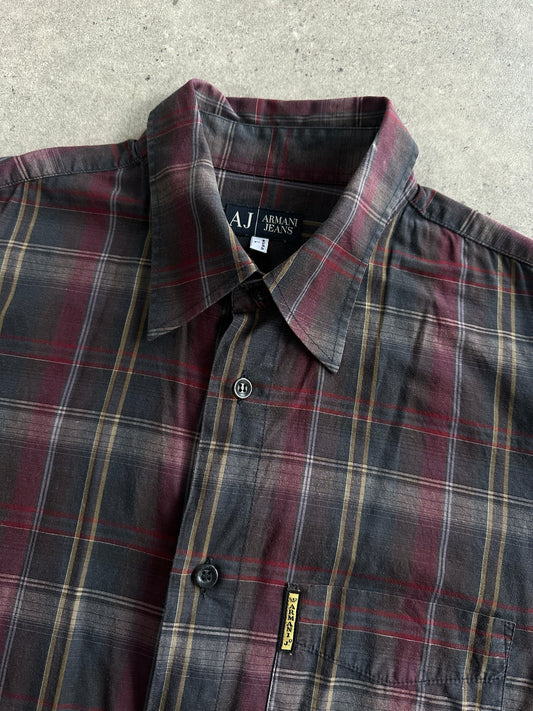 Armani Jeans 2000s Check Pure Cotton Flannel Logo Shirt - L