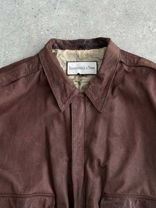 Vintage Leather Bomber Jacket - L/XL