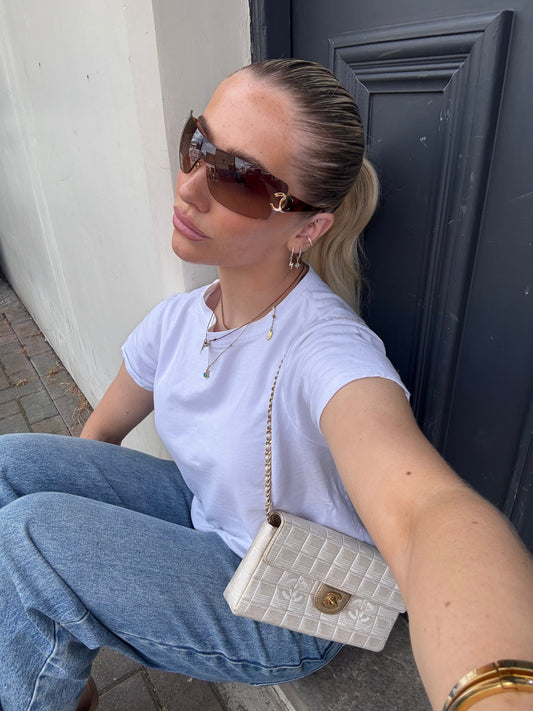 2000s Vintage Chanel Camellia Crystal Sunglasses
