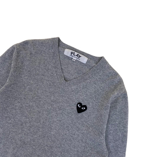 CDG PLAY KNITTED WOOL SWEATER GREY M