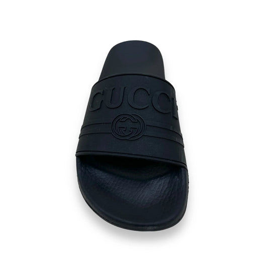 GUCCI RUBBER TRADEMARK LOGO SLIDES BLACK UK5