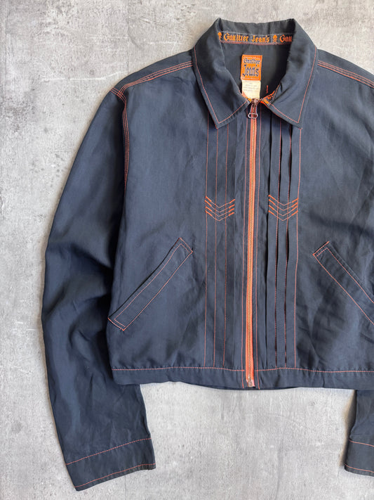 90's Gaultier Jeans Cropped Contrast Stitch Pleated Jacket