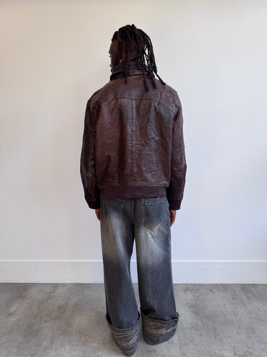 1980's Scarface Brown Cows Leather Hardware Detailed Bomber Jacket