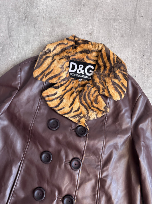 Dolce & Gabanna Deadstock 1990s Leopard Print Trim Coat