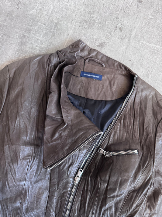 Vintage 2000s Minimal Tie Belt Leather Jacket - S