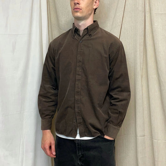 Stone Island Brown AW97 Fine Cord Concealed Button-Up Shirt