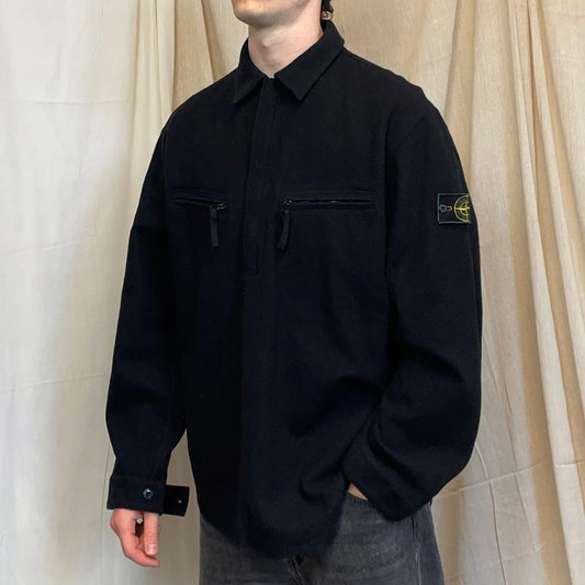 Stone Island Black AW98 Wool Half-Zip Green Edge Badge Smock Overshirt