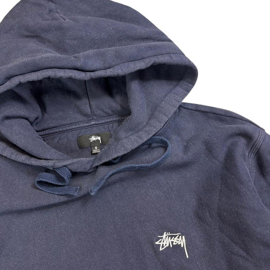 Stussy navy embroidered logo thick pullover hoodie (S)