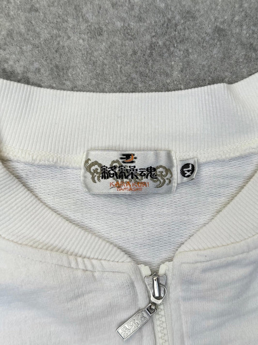 Karakuri Dragon Embroidered White Zip Up Sweater