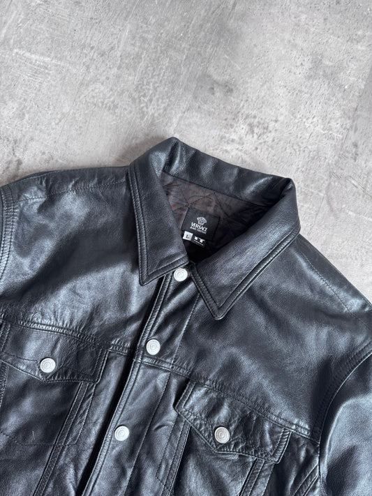 Versace Black Soft Leather Trucker Jacket