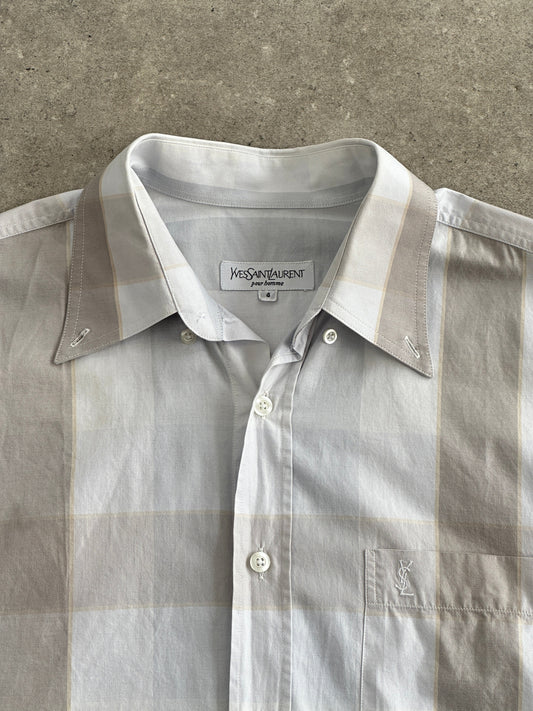 Yves Saint Laurent Pour Homme 1990s Cotton Check Short Sleeve Logo Shirt - XL