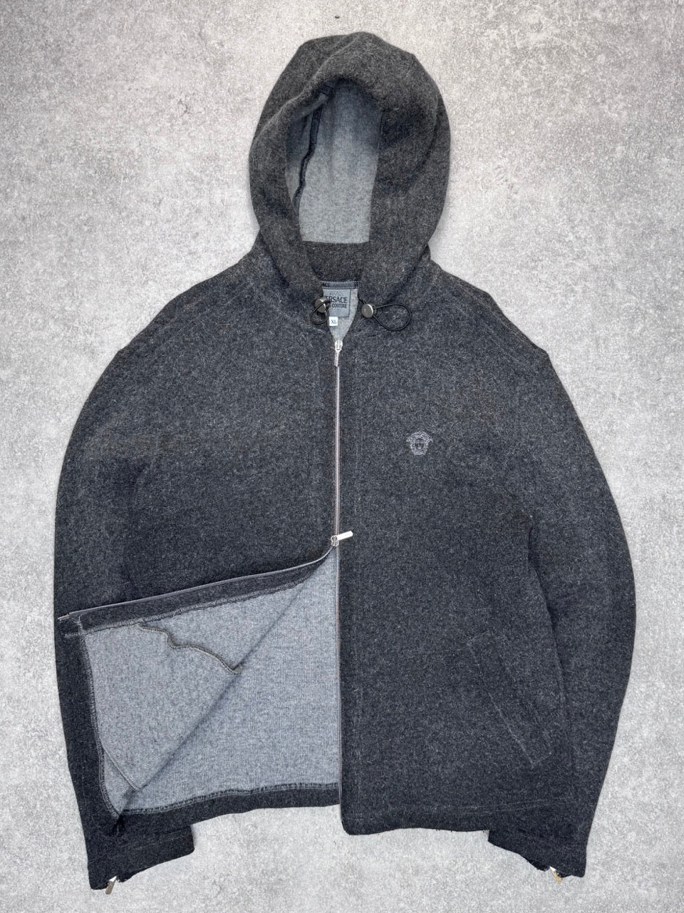 90s Versace Jeans Couture Grey Wool Hooded Cardigan