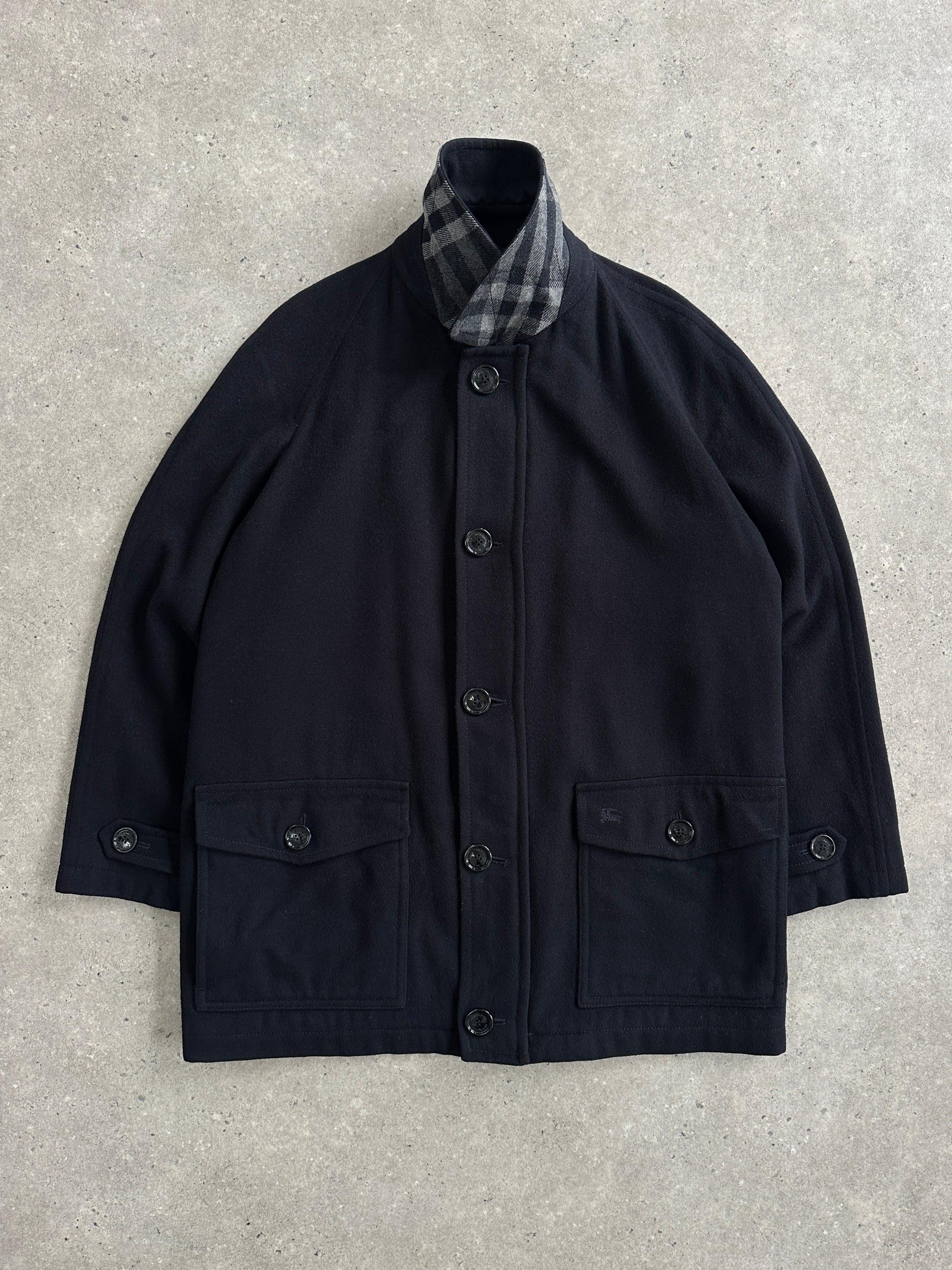 Burberry London 1990s Wool Single Breasted Logo Coat - L/XL