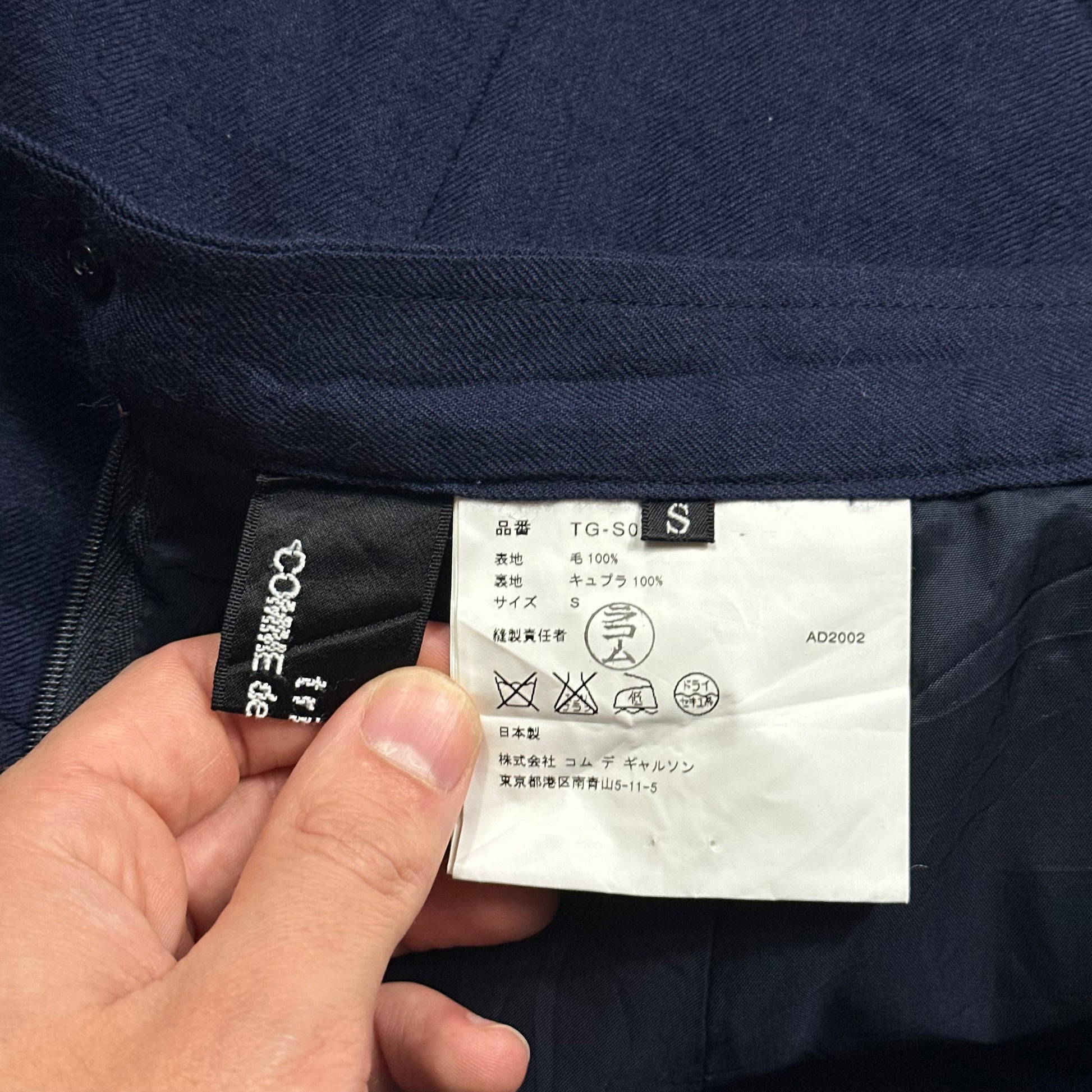 Lovely blue wool CDG Tricot A-line midi skirt, zip and button waist, silky rayon cupro lining, nice subtle panelling, Made in Japan.