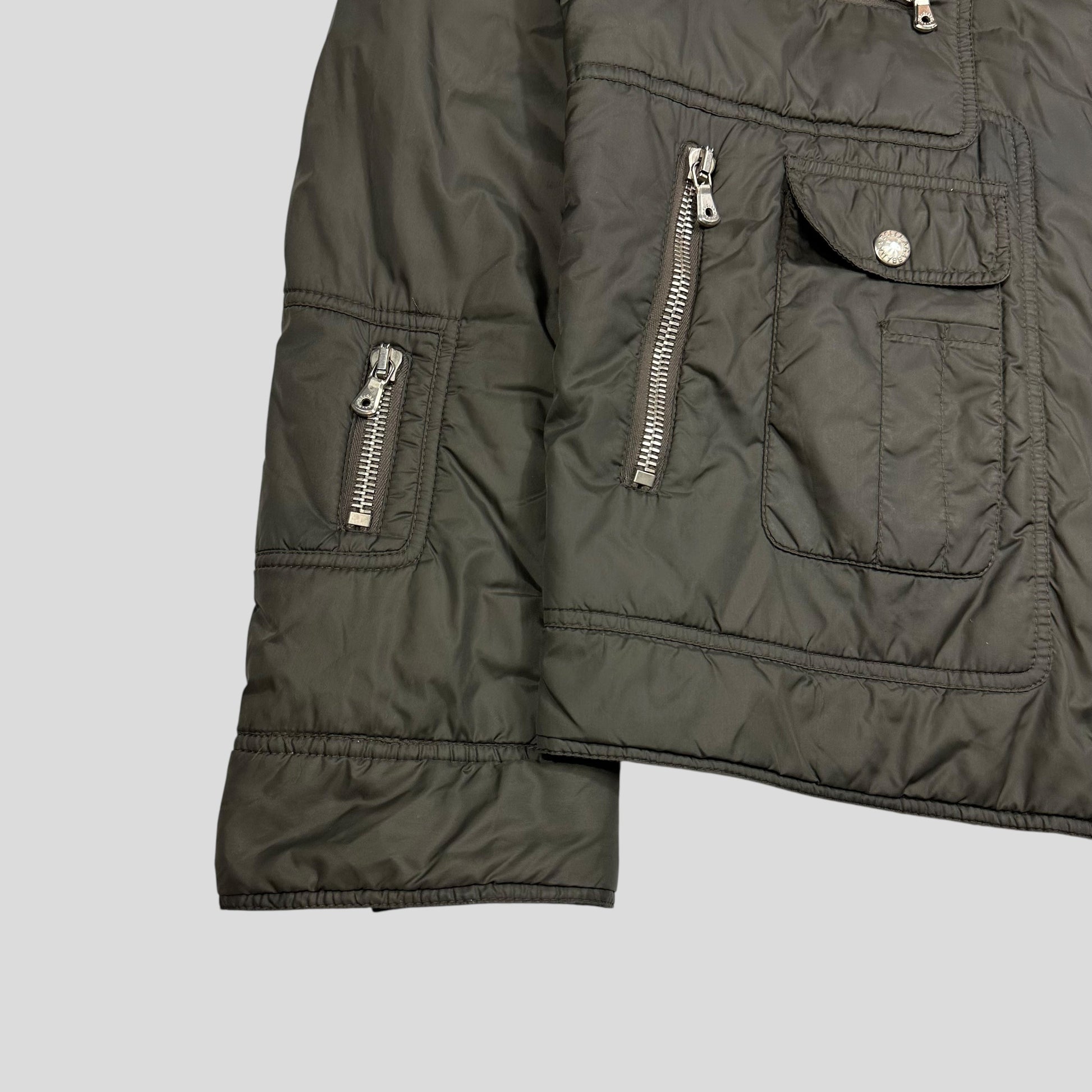Very rare D&G mainline autumn winter 2003 polyester nylon grey padded aviator puffer bomber jacket, from the most iconic 2000’s Dolce season, multipocket zips everywhere, lovely soft silky polyester material with lightweight padding, metal Lampo zippers, Made in Italy.