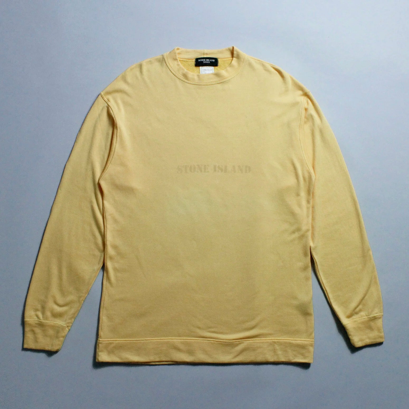 A timeless crew neck style sweater complete with stencil spell out, comprised of soft terry towelling material interior and a fine cotton exterior. Tapered stretch cotton neck, cuff and hemline. Featuring the iconic and rare black line “TENNIS” label, a range of functional garments based on the performance of the given sport.
