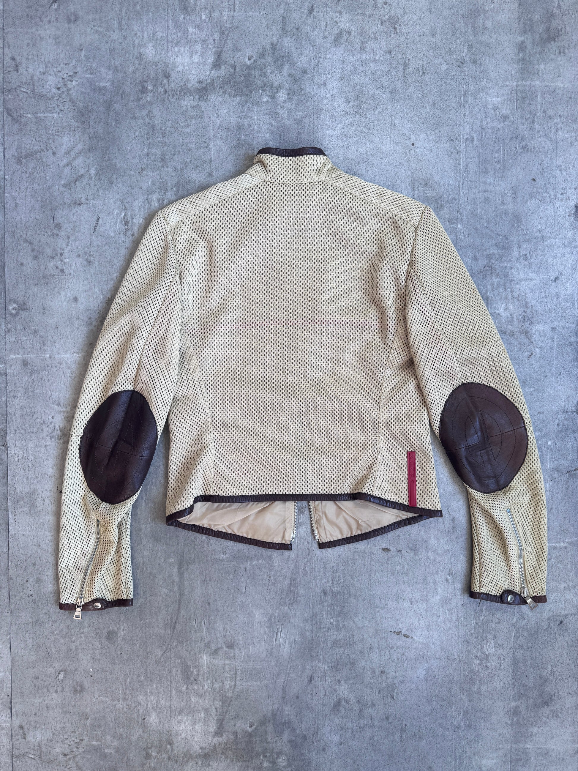 SS 2000 Prada Perforated Mesh Leather Trim Racer Jacket