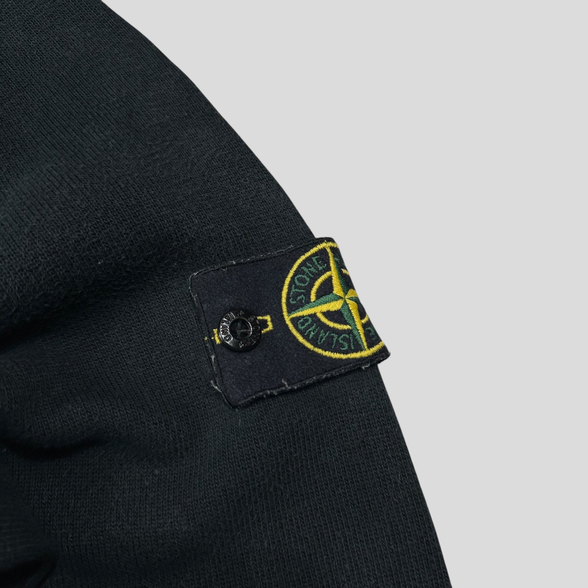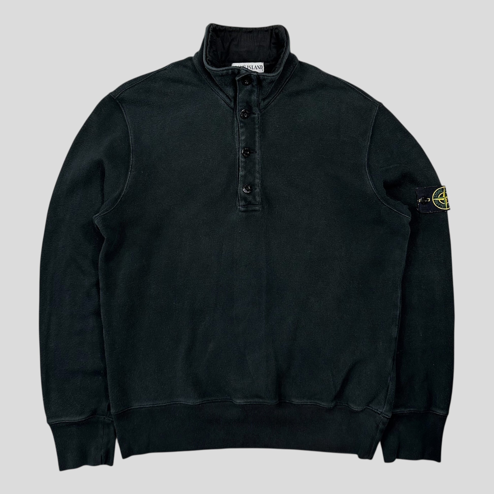 Rare Stone Island autumn winter 2009 washed black heavy cotton sweatshirt with 1/4 button neck that can be worn up or collared down.