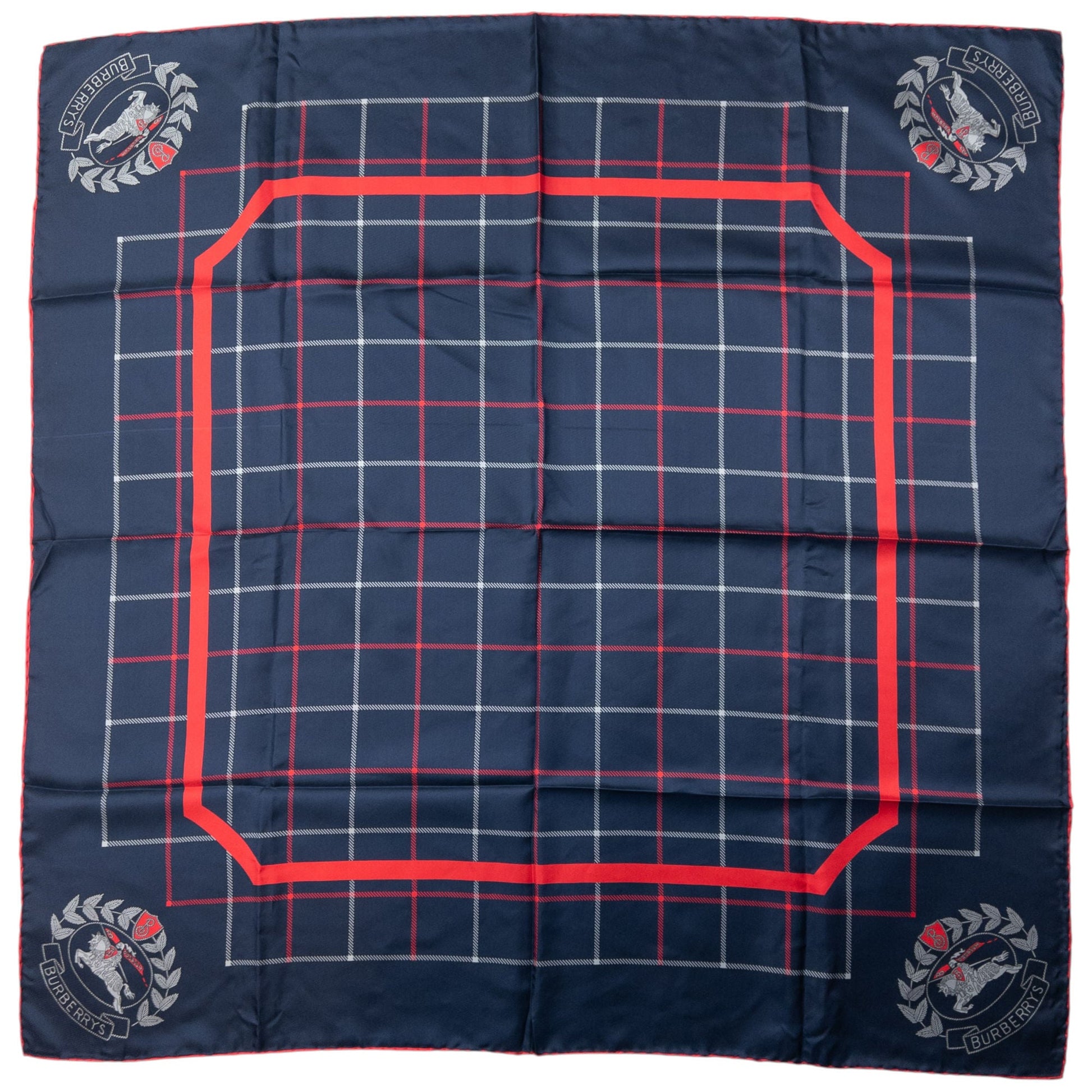 • Other info: Navy colour, red accent colour, checkered pattern, crest logo detail, 34x34in square