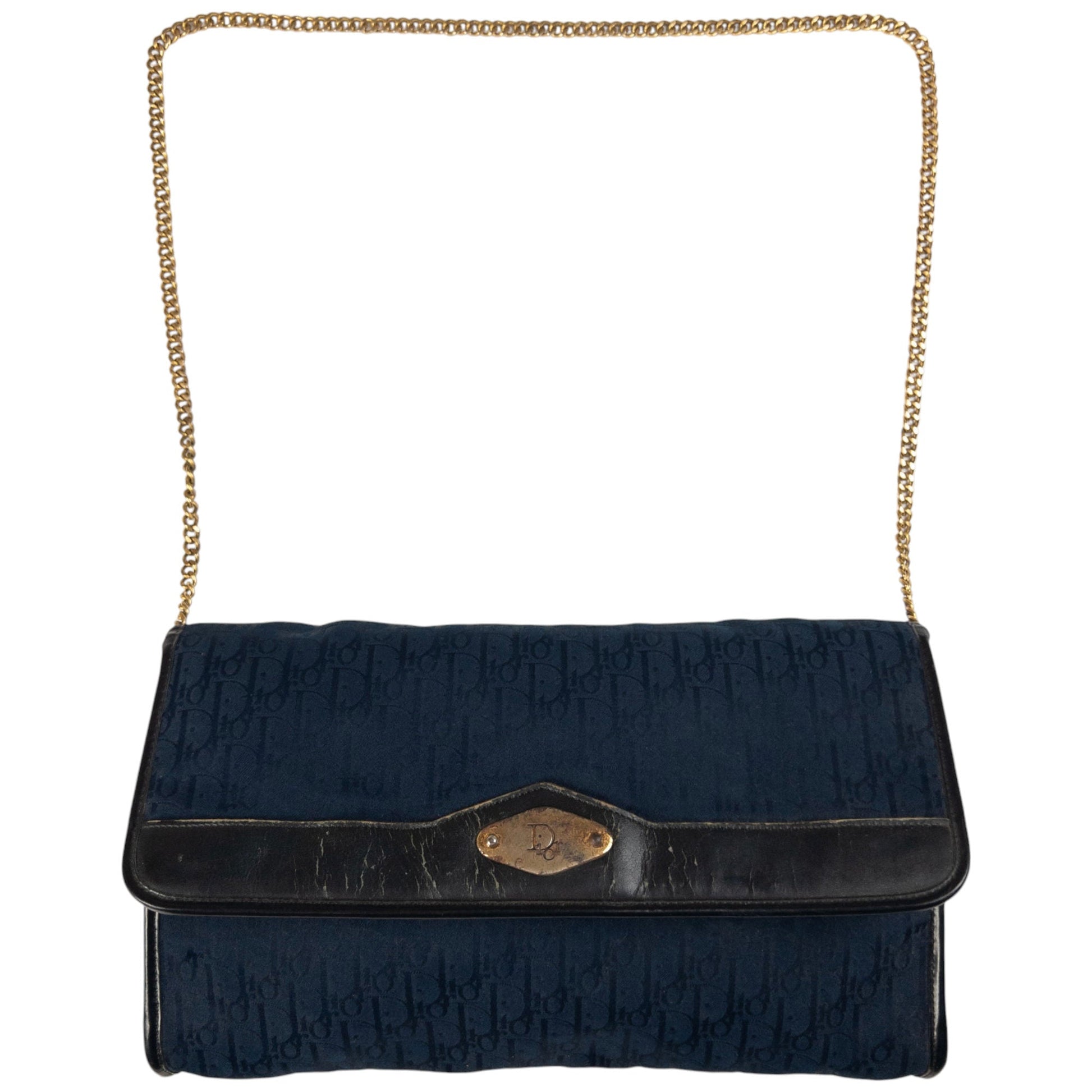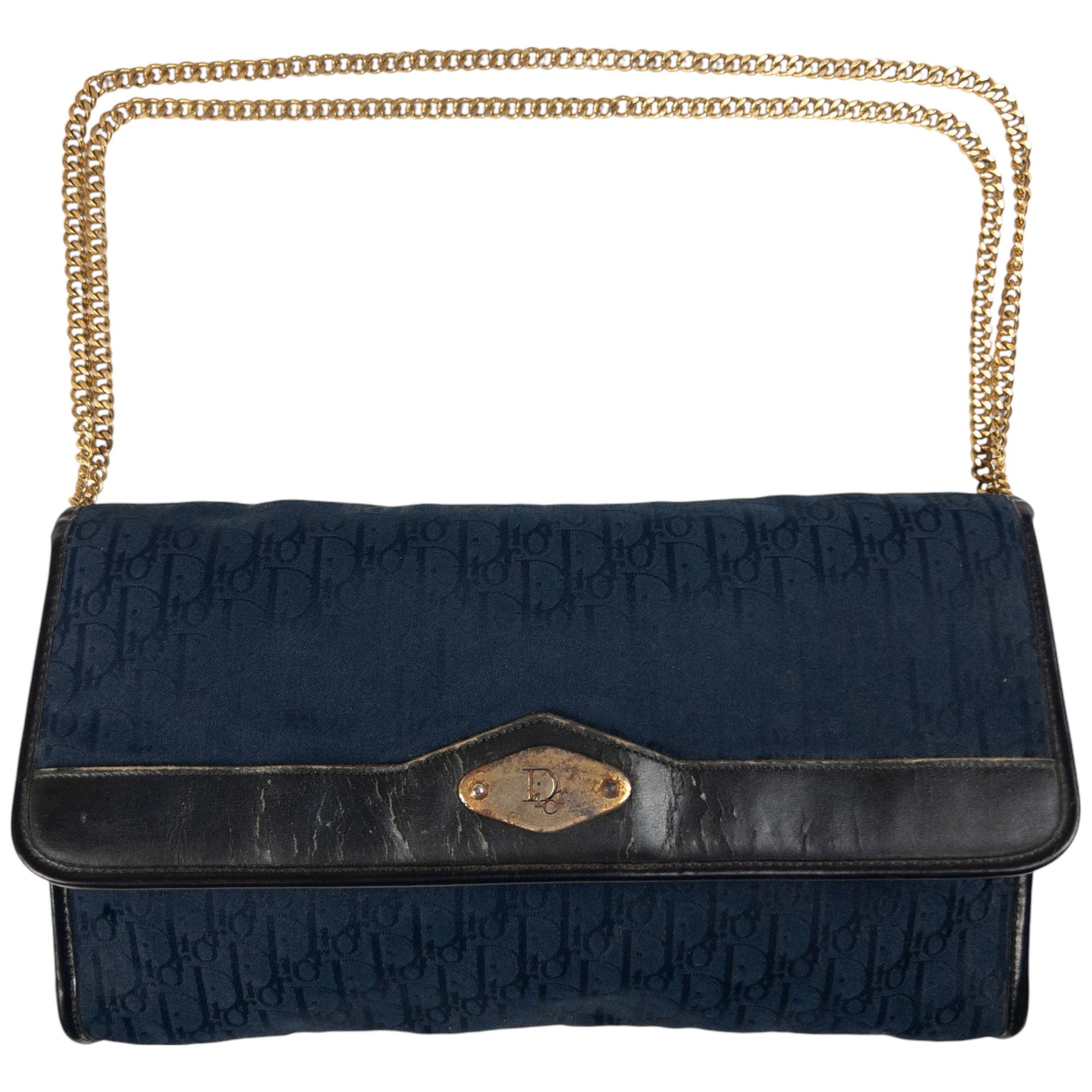 • Other info: Navy colour, monogram pattern, clutch style, crossbody/shoulder adjustable chain, hold accent colour, visible wear and rust as shown, discolouration as seen