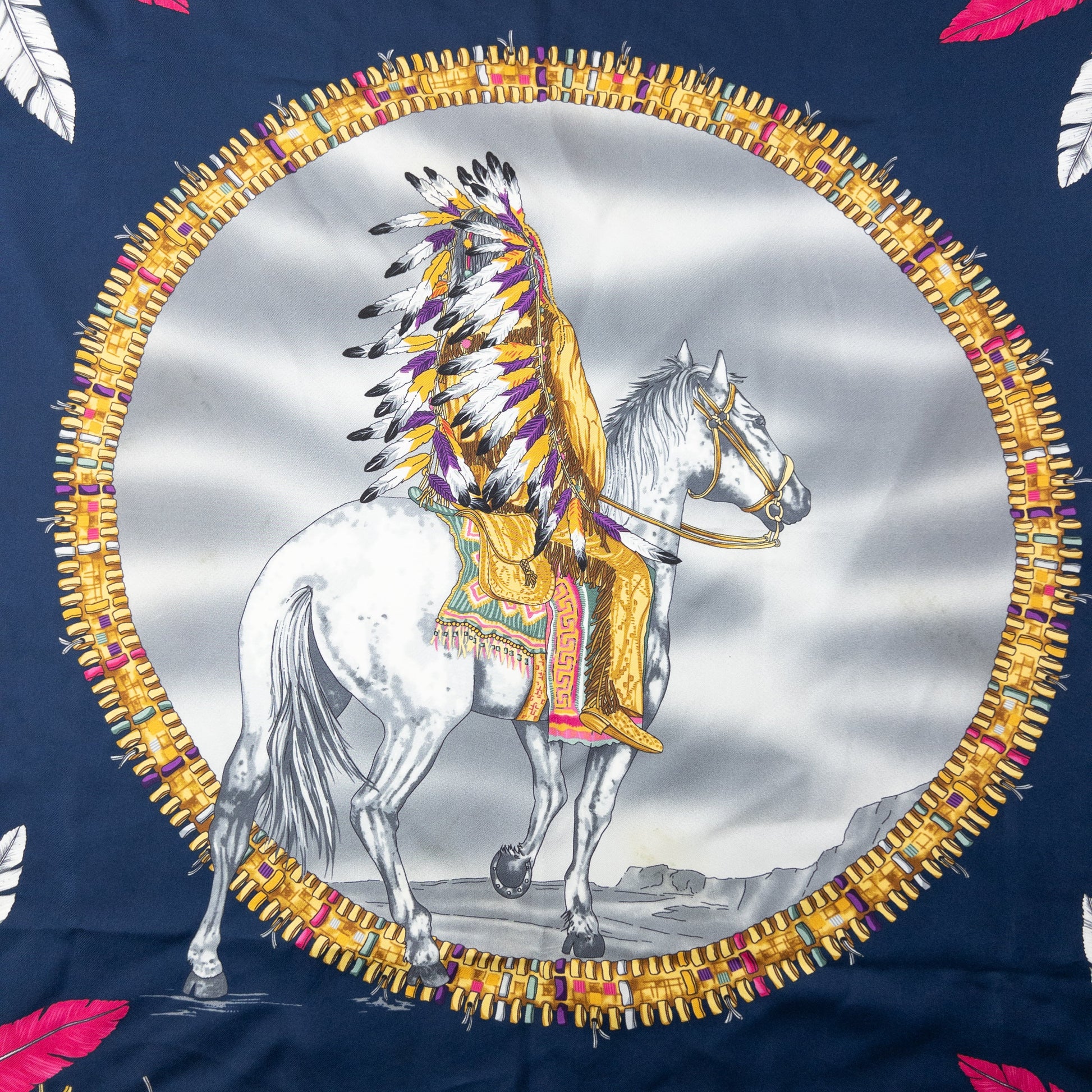 • Other info: Multi colour, mix pattern print, native american horse-rider motif, 33x33in square, some minor marks as shown