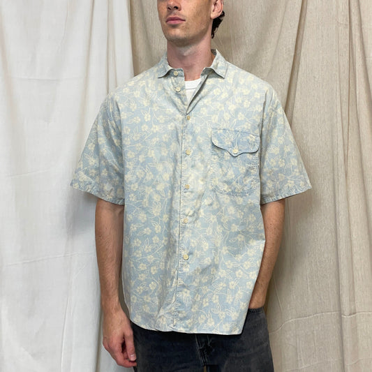 Giorgio Armani Light Blue 80s Floral Print Short Sleeve Shirt