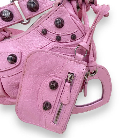 BALENCIAGA LE CAGOLE BRAIDED HANDLE LEATHER SHOULDER BAG PINK XS