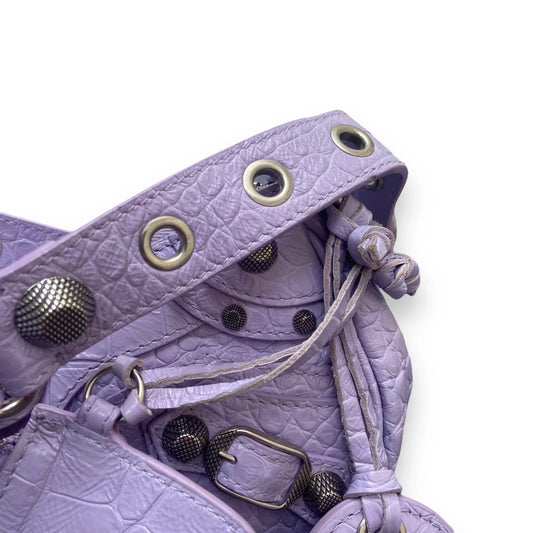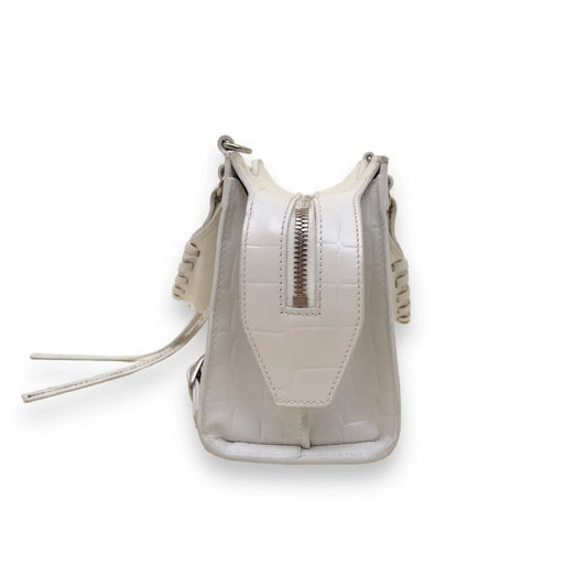 BALENCIAGA NEO CLASSIC CITY CROCODILE PRINT LEATHER BAG WHITE