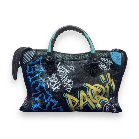 BALENCIAGA CITY CLASSIC LEATHER GRAFFITI BAG S