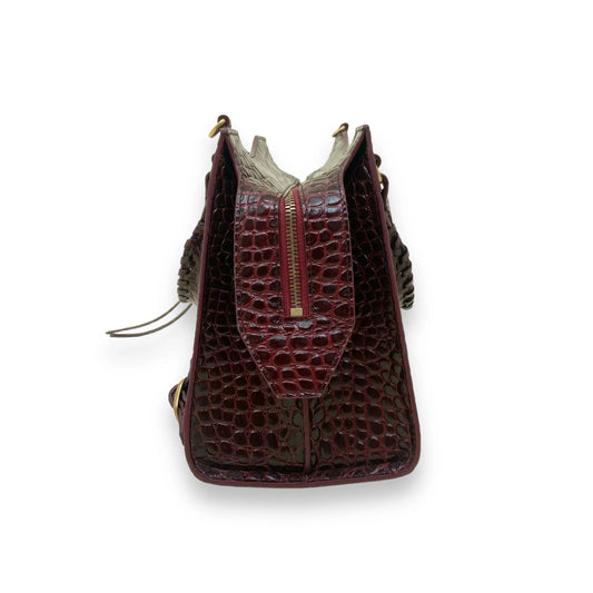 BALENCIAGA CLASSIC CITY CROC EMBOSSED LEATHER BAG BURGUNDY LARGE