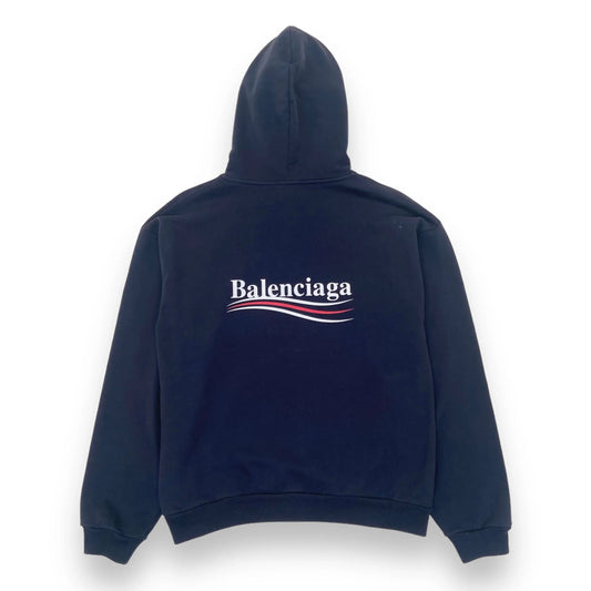 BALENCIAGA COTTON-JERSEY POLITICAL LOGO HOODIE NAVY M