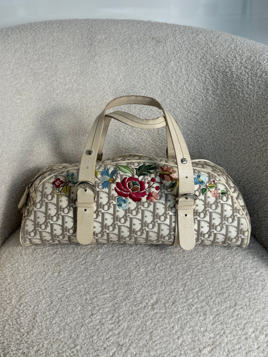 Vintage 2005 Christian Dior Beige Flower Monogram Handbag