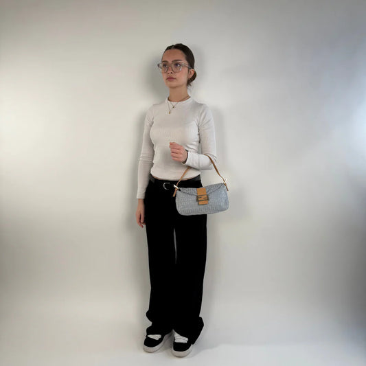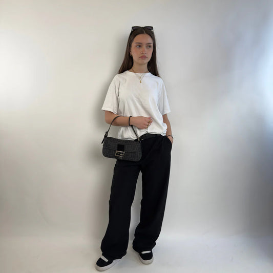 Vintage Fendi Zucca Baguette Shoulder Bag 90s (Black/Cream)