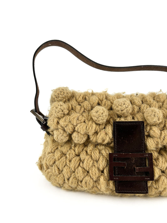 Vintage Fendi Crochet Knit Baguette Shoulder Bag 90s