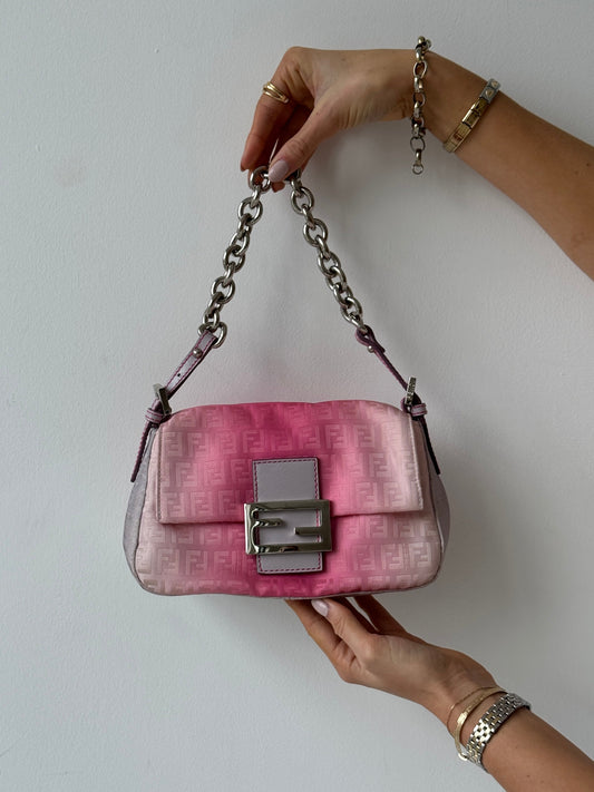 Fendi Zucca Pink Ombré Chain Mini Baguette Bag