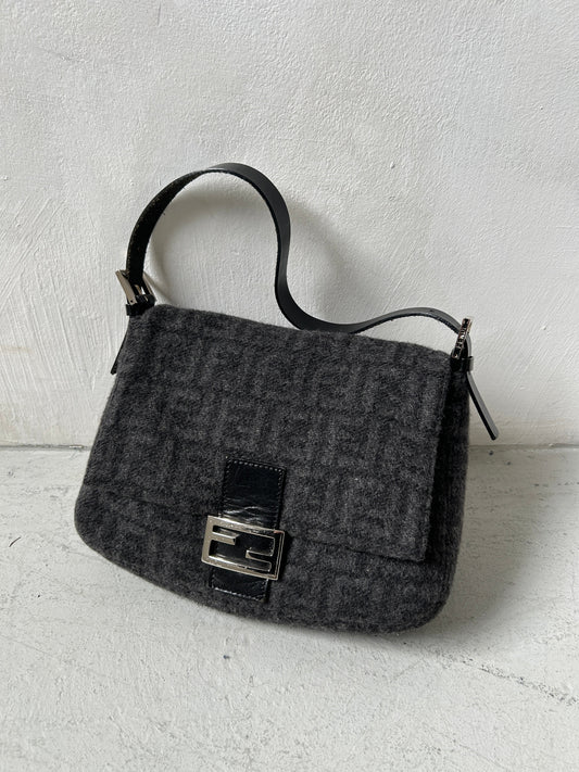 Vintage Fendi Zucca Cashmere Mamma Baguette Shoulder Bag