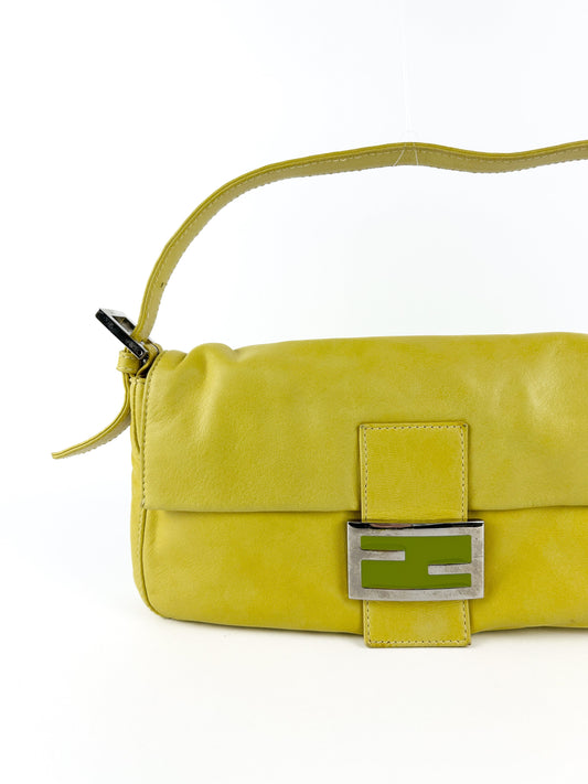 Vintage Fendi Yellow Leather Baguette Shoulder Bag