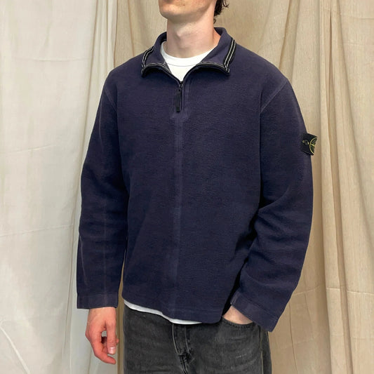 Stone Island Navy AW03 Cotton Half-Zip Fleece Jumper