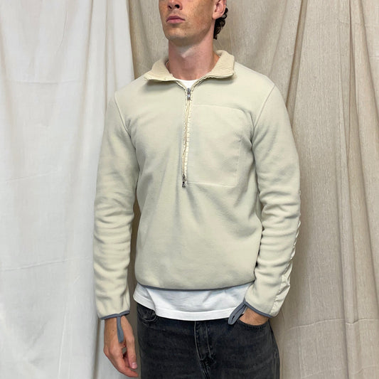 Prada Sport Cream 00s Nylon Elbow Dual-Zip Lightweight Fleece Jumper
