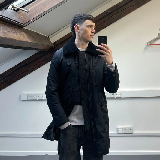 Prada Sport Black Nylon Sheep Fur Padded Long Coat