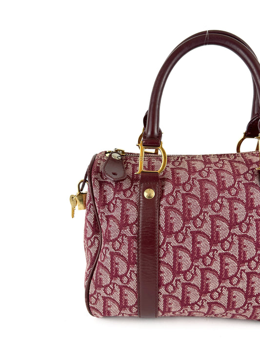 Vintage Christian Dior Bordeaux Red Monogram Boston Handbag (2003)
